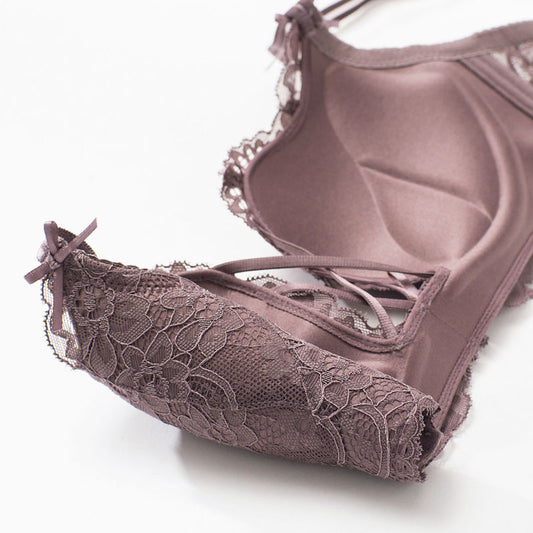 Women Purple Sexy Lingerie Set Underwire Bow Panties Padded Underwear A B C Big Plus Size Push Up Bra Sets