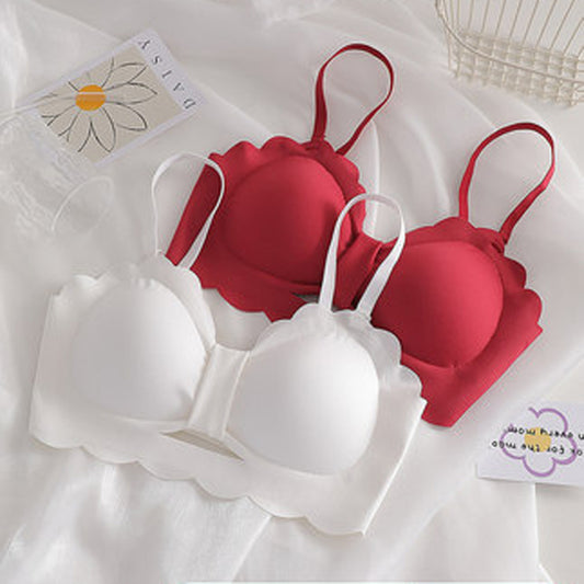Women Red Skin Bralette Cotton Panties Bra Sets Half Cup Padded Sexy Lingerie Sets Wireless Underwear A B
