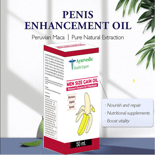 Men Size Gain Oil 50ml 100% Pure & Natural Herbal Massage Oil for Men Boosts Strength, Stamina & Vitality Chemical-Free