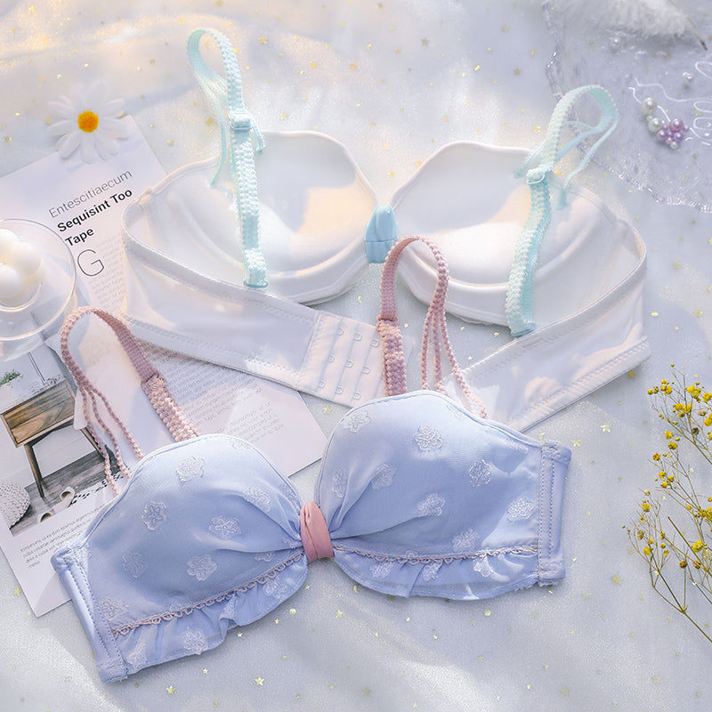 New Blue For Women Lace Bra Sets Half Cup Straps Bow Cotton Panties Push Up Underwear Lingerie Sets