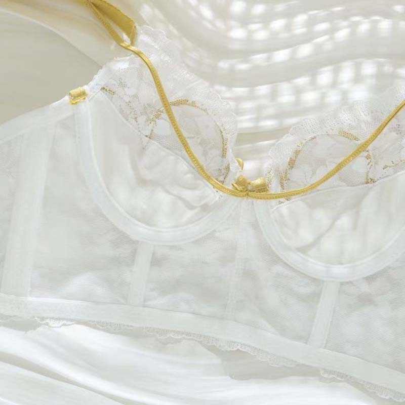 Women Black Lace Trim Straps Bralette Cotton Panties Padded Push Up Bra Sets Underwear Lingerie Sets A B