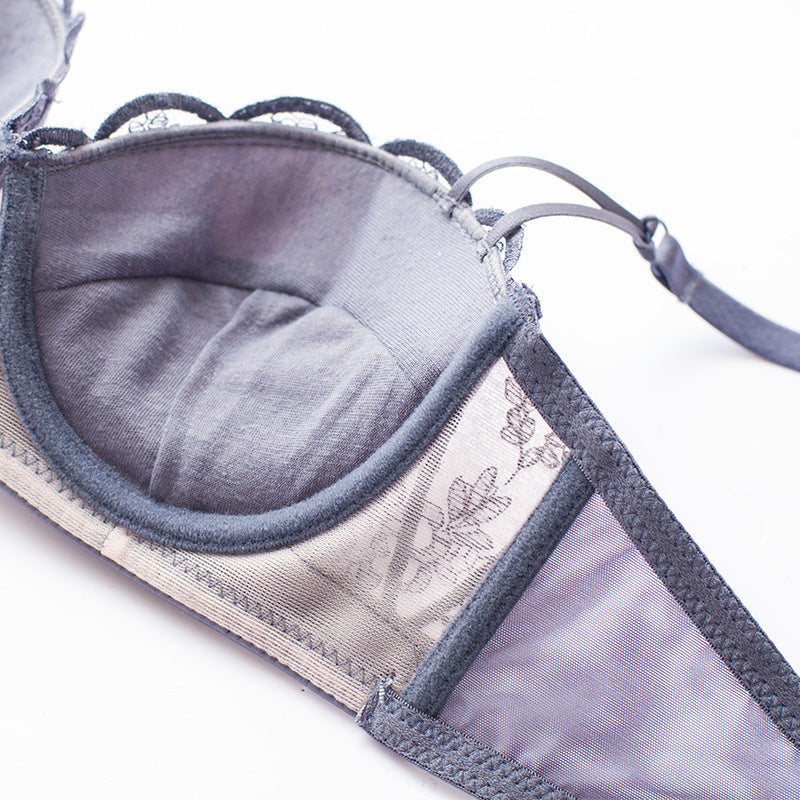 Women Red Lace Trim Mesh Padded Bras Bralette Hollow Cotton Panties Push Up Lingerie Sets Underwear
